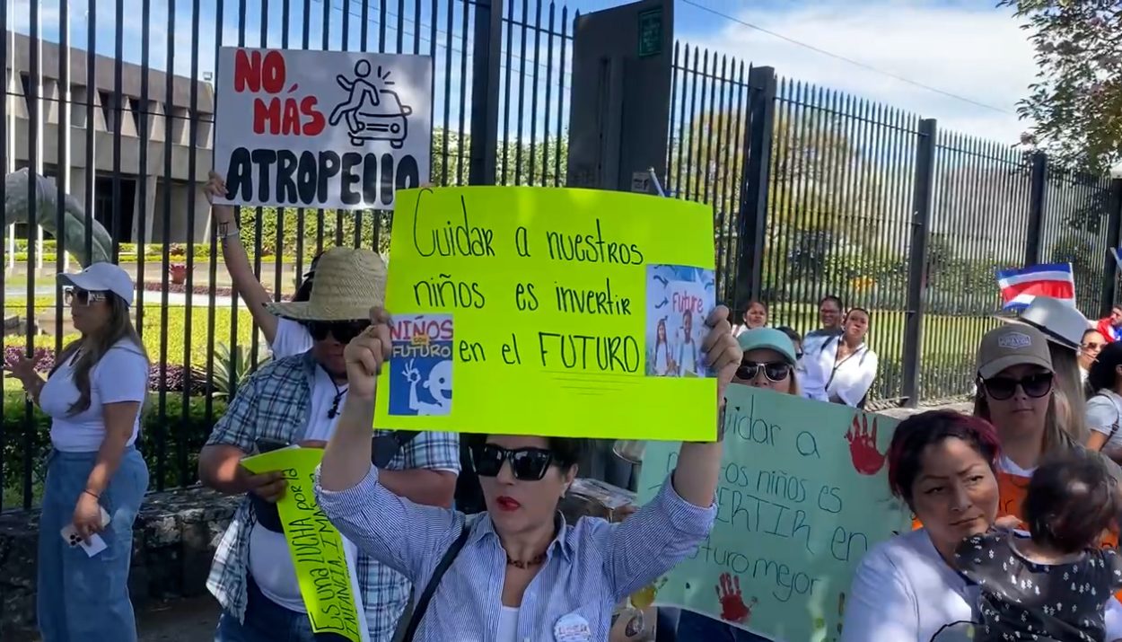 Este miércoles 19 de marzo, un grupo de representantes de las redes de cuido se manifestaron en las afueras de Casa Presidencial en Zapote, en contra de los recortes que según dicen llevarán a un cierre técnico de estas redes.